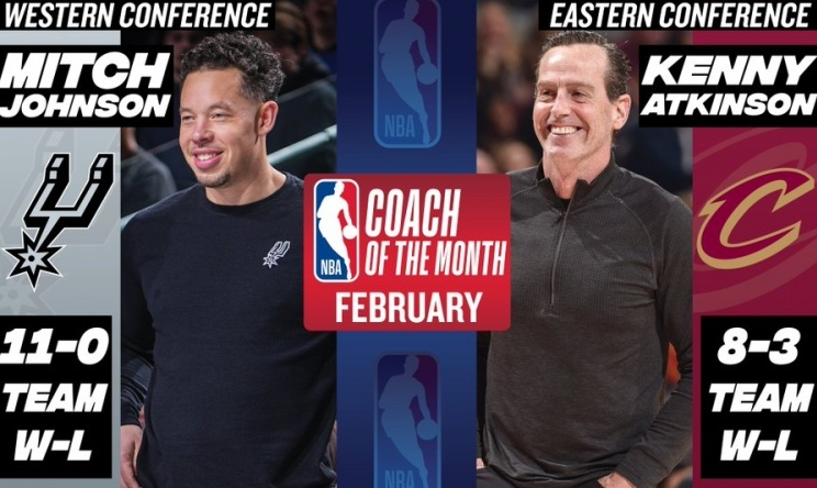 即便活塞队二月份战绩十分出色,可活塞队主帅比克斯塔夫却无缘东部最佳主帅,要怪只能怪骑士队的势头更加凶猛。二月份,骑士队迎来了哈登,阿特金森带队取得了8胜3负的战绩。在这个过程中,骑士队阵容从未齐整过,可他们还是先后将尼克斯、快船、掘金等强队斩落马下。毫无疑问,哈登让这支骑士队如虎添翼,阿特金森有望带领这支球队重返争冠行列。